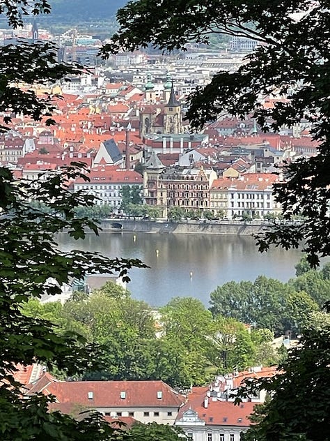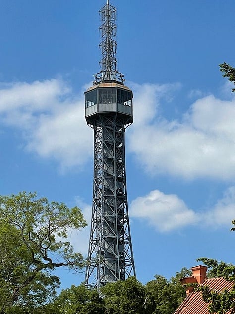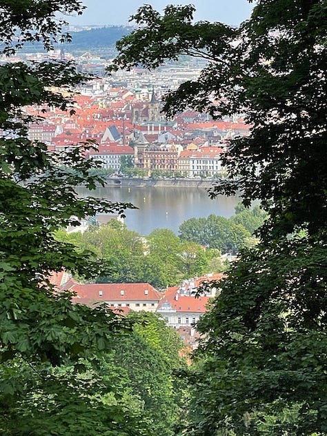 Last Wednesday, May 1 (or 1 May if you’re feeling and are more European) was International Worker’s Day. It’s also the Valentine’s Day (or May Day) of the Czech Republic when the cherry blossoms are in full bloom, and couples crowd the parks, especially, and including Petrin Hill in Mala Strana (Lesser Town). After all, who doesn’t want to be in the shadow of Prague’s mini Eiffel Tower near the Mirror Maze at the top of a hill overlooking the city and the river that runs through it?